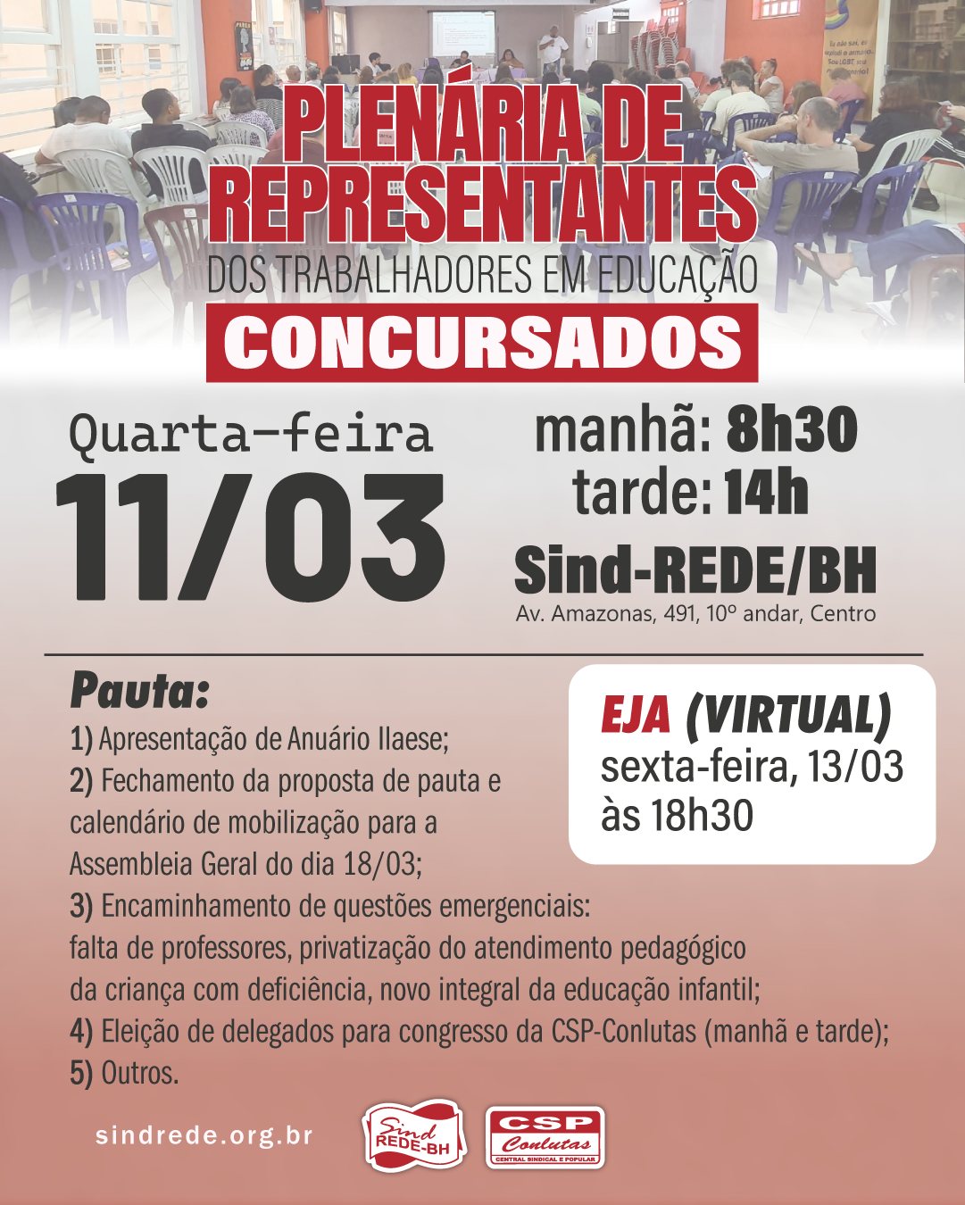 Encontro realizado ontem (04/03/26) discutiu reivindicações da categoria, como concurso público, cumprimento da Portaria 176/2025, teletrabalho, melhores condições de atuação nas escolas e isonomia no vale-refeição.