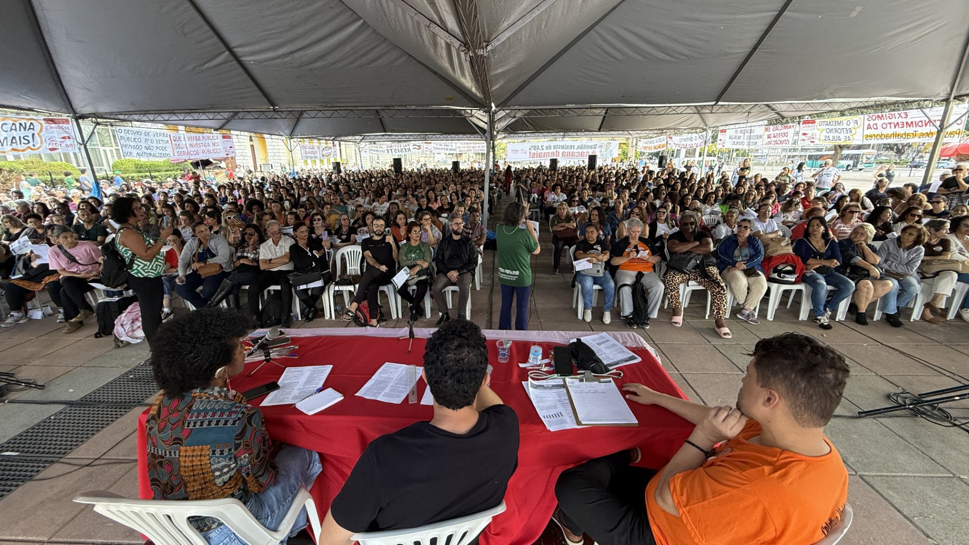 Com mais de duas mil pessoas presentes na Praça da Estação, os trabalhadores em educação da Rede Municipal de Belo Horizonte decidiram, por ampla maioria, na tarde desta quinta-feira (26/06), pela continuidade da greve, que já completa 21 dias. A paralisação segue forte, atingindo cerca de 80% das escolas da capital.