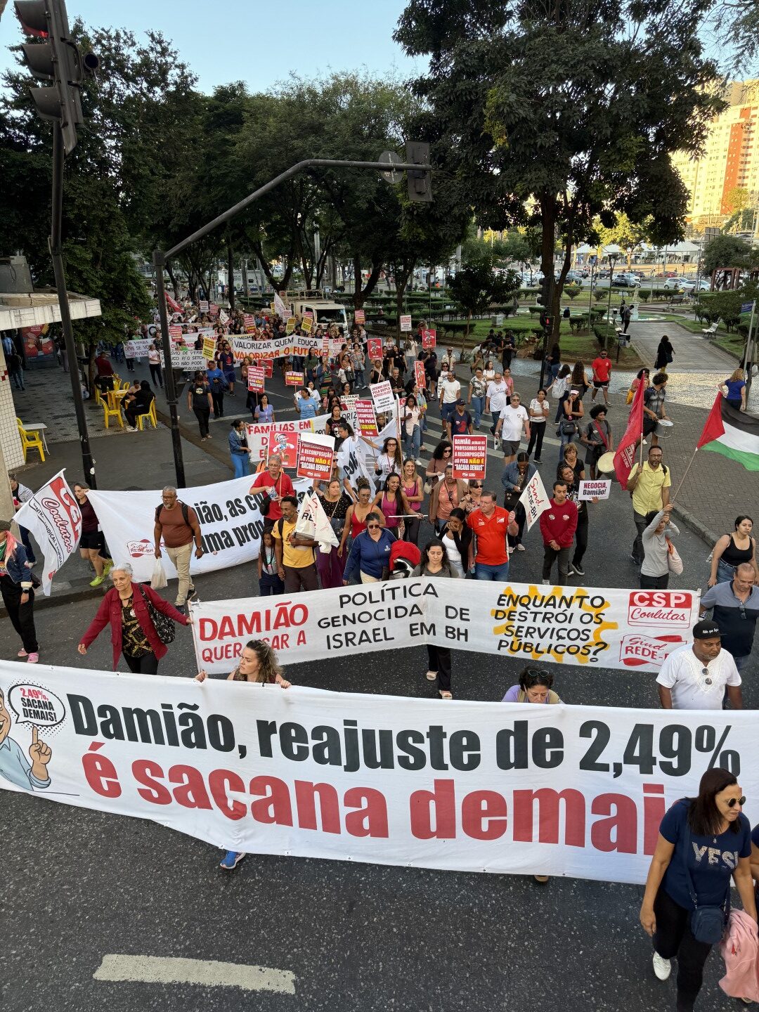 Após a assembleia a categoria seguiu em marcha em direção à porta da Prefeitura, confira as fotos: