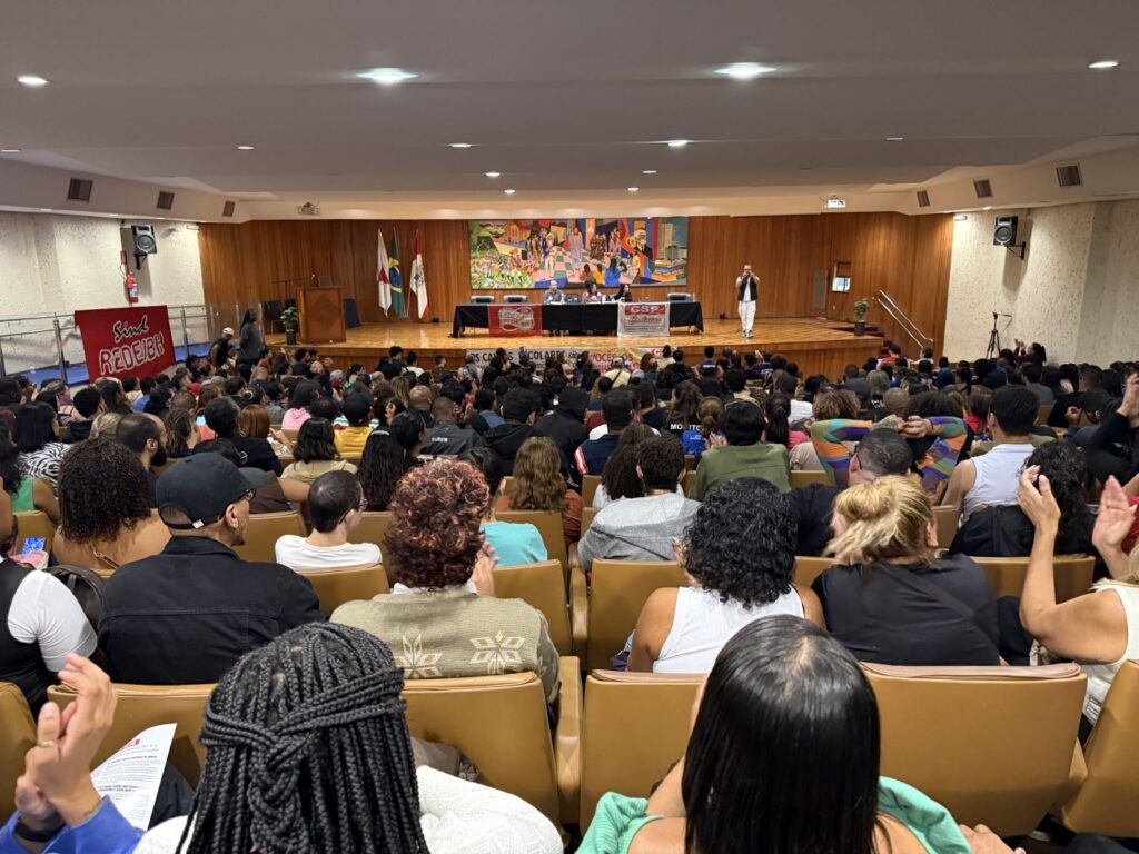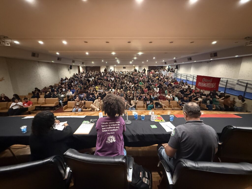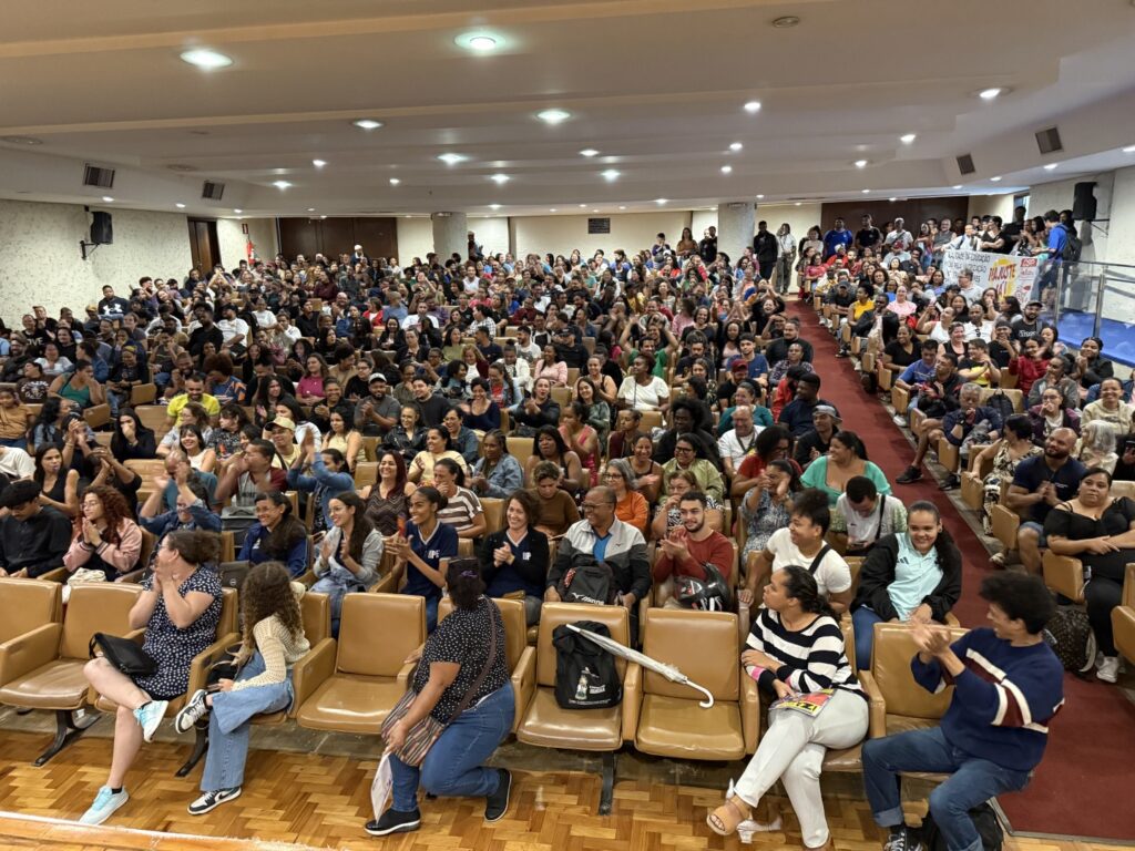 Em uma assembleia ampla e representativa, realizada na manhã desta terça-feira (25/02), no auditório da Faculdade de Direito da Universidade Federal de Minas Gerais (UFMG), mais de 500 trabalhadores e trabalhadoras em educação do Programa Escola Integrada (contratados pelas Caixas Escolares) debateram a Campanha Salarial 2026 e deliberaram pelo aceite da proposta apresentada pela Prefeitura de Belo Horizonte.